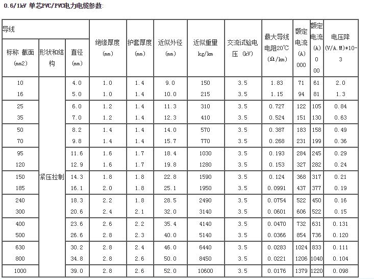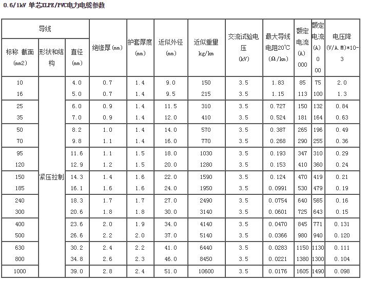 1.未作特別說明,電纜額定電壓(Uo/U)均為0.6/lkV銅導體單芯低壓電力電纜。